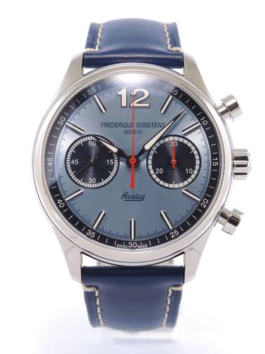 New Frederique Constant Vintage Rally Healey FC-397HLBN5B6 Full Set Limited Edition Boitier acier sur bracelet cuir, boucle ardillon, cadran bleu soleillé, chronographe, deux compteurs, verre et fond de boîte saphir, mouvement automatique. Avec boîte et papiers d'origine, set complet ! Edition limitée " Austin Healey", 1888 exemplaires ! Jamais portée, comme neuve. 2 495 € Paris