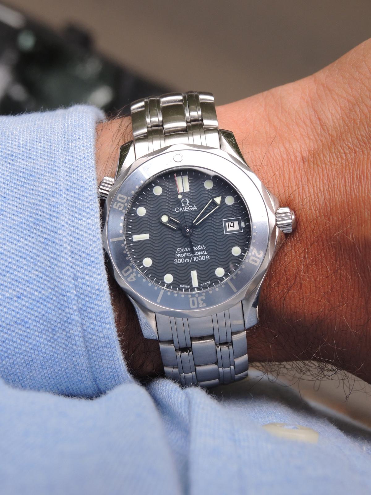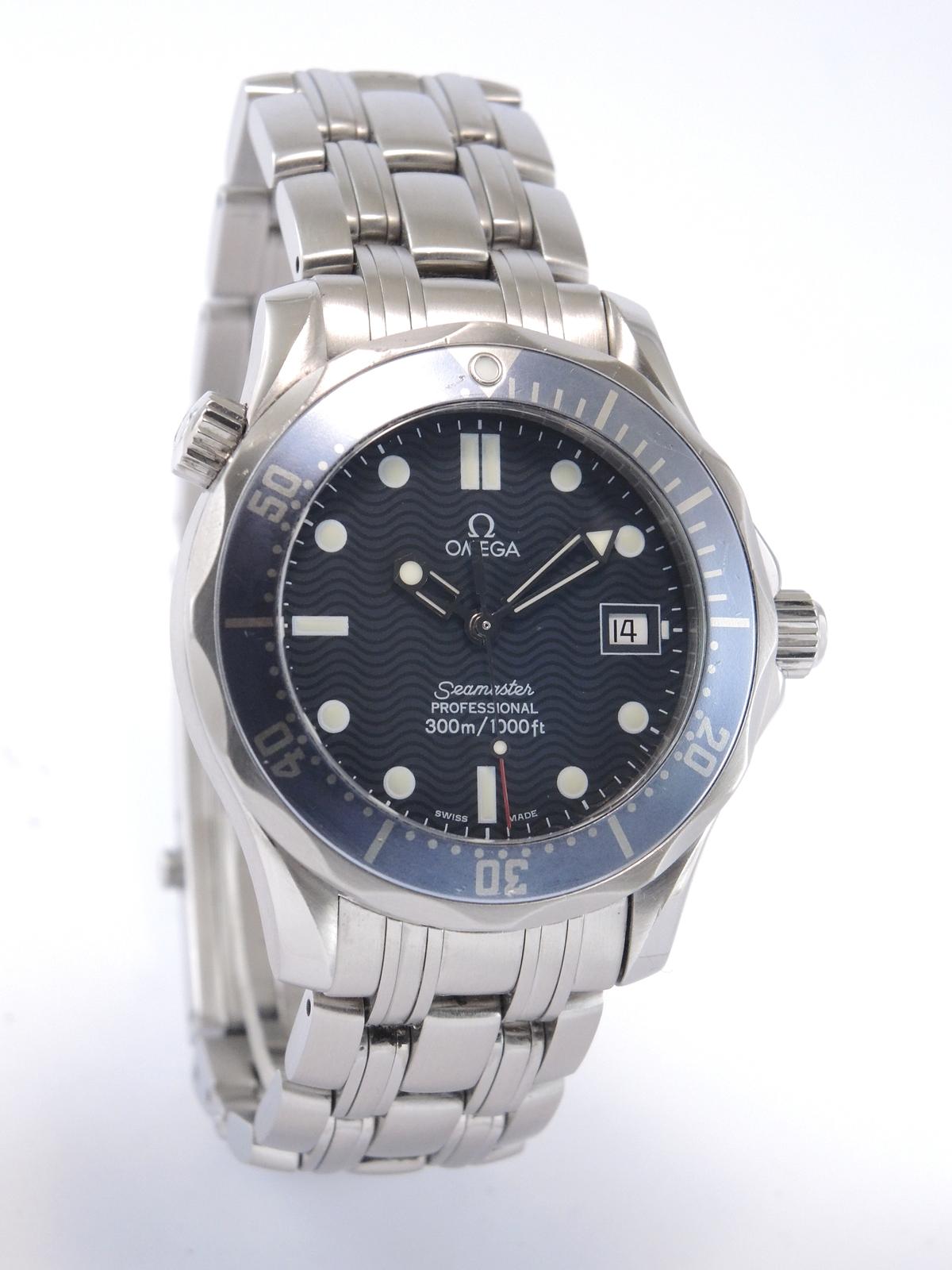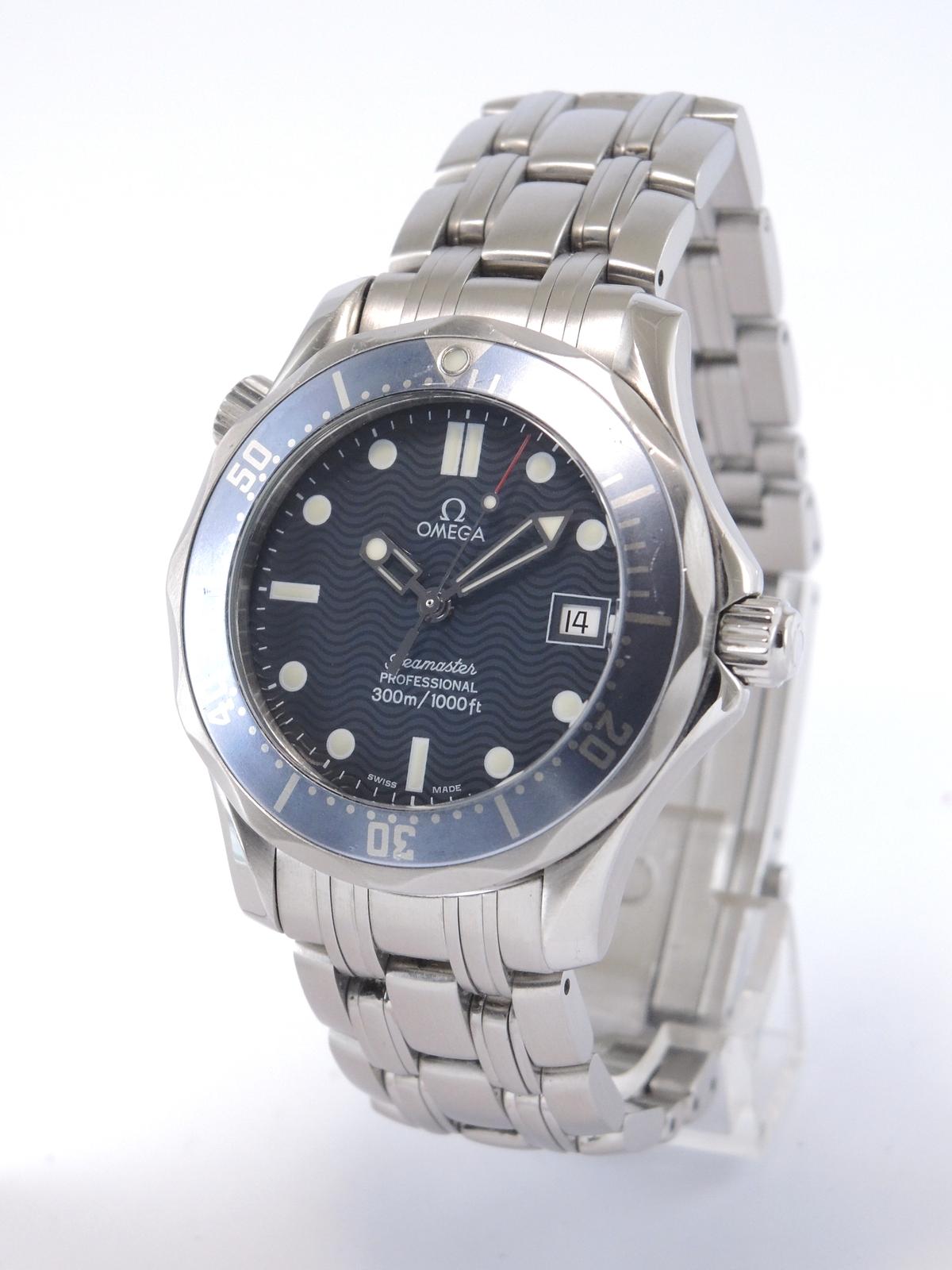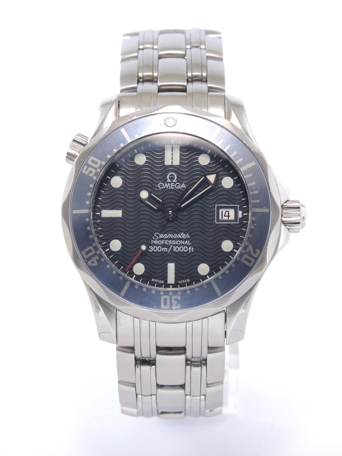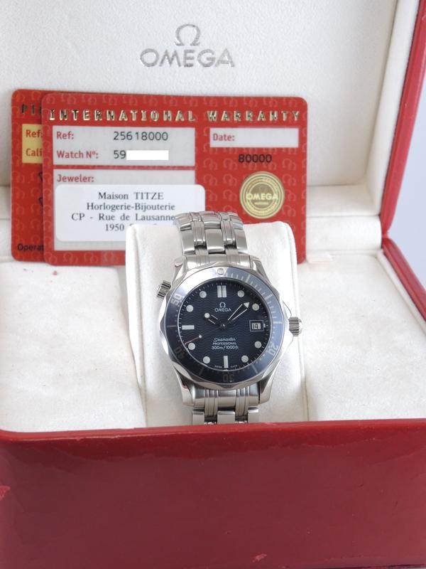 Seamaster Diver 300M 25618000 Full Set - Complet acier, cadran bleu texturé, aiguilles et index luminescents, date, verre saphir, lunette tournante, couronne vissée, mouvement quartz. Avec boîte et papiers d'origine, set complet !