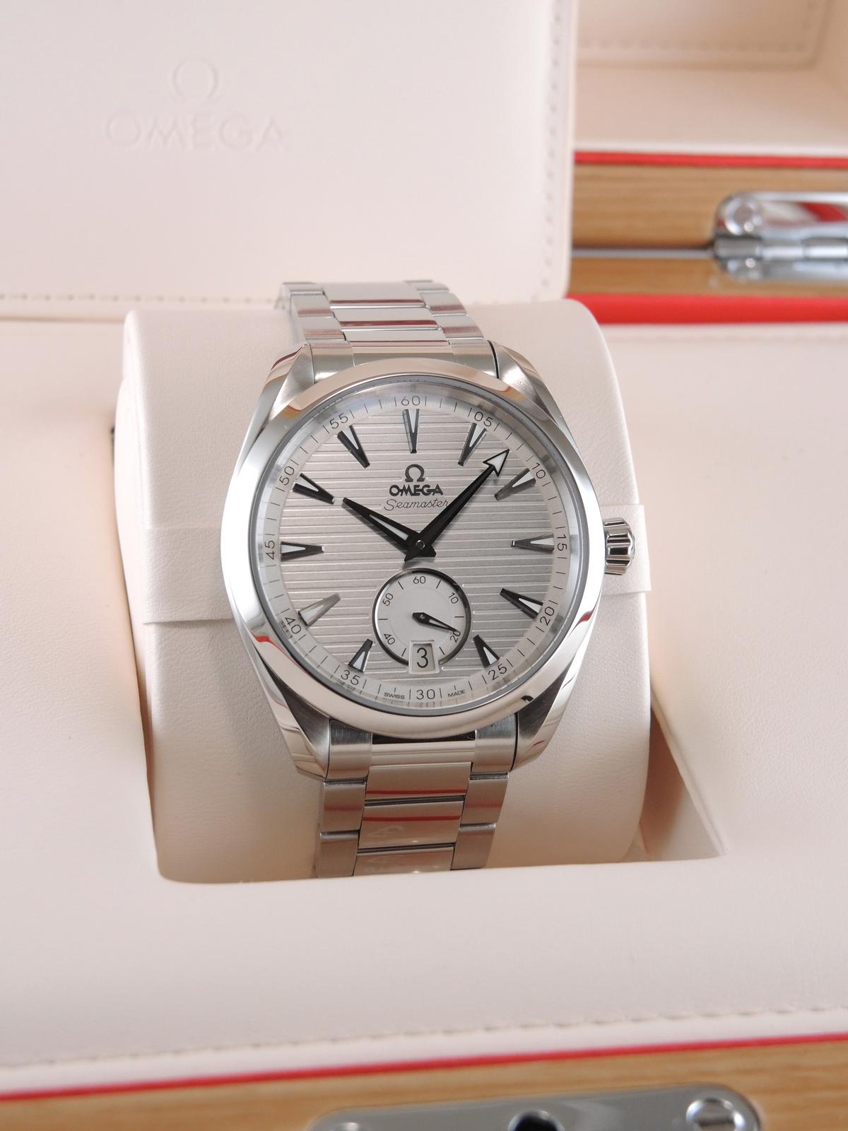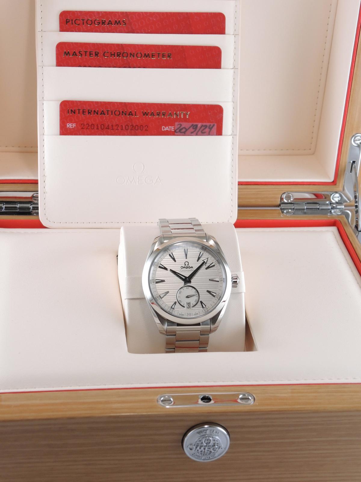 Seamaster Aqua Terra 22010412102002 Full Set 2024 - Complet acier, cadran argenté, petite seconde, date, aiguilles et index luminescents, verre et fond de boîte saphir, couronne vissée, mouvement automatique Co-Axial. Avec boîte et papiers d'origine, set complet !