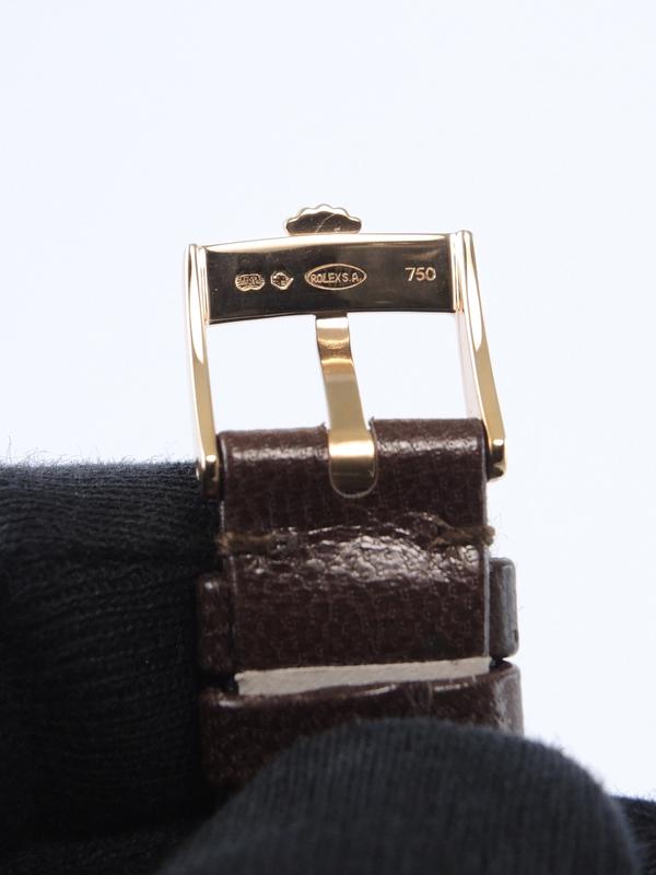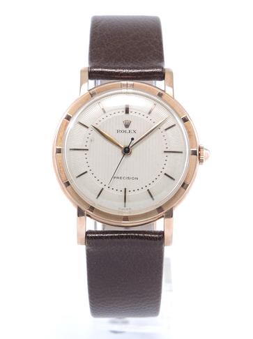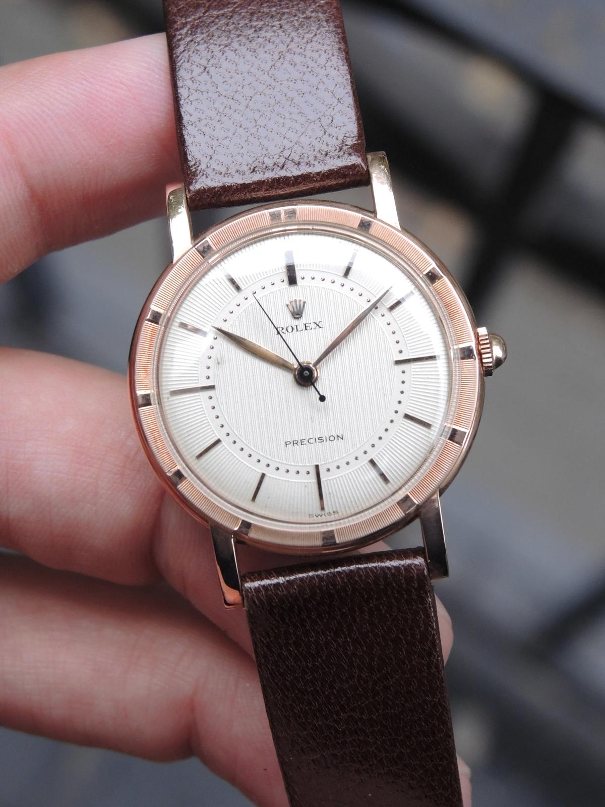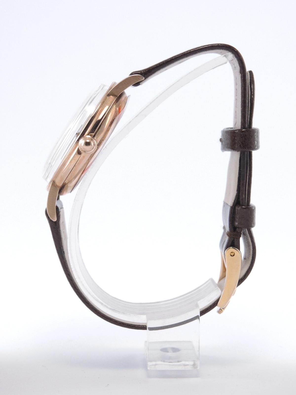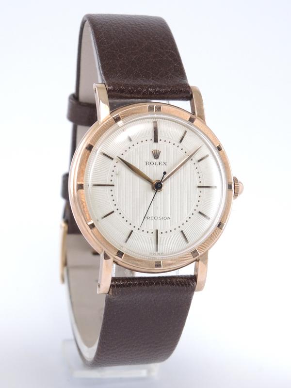 Precision Vintage Box & Rolex Restoration - Boitier or rose sur cuir, boucle ardillon en or, cadran blanc guilloché, indexes bâtons, aiguilles feuilles, verre pexi, mouvement mécanique à remontage manuel. Avec écrin et papier de restoration Rolex 2018.