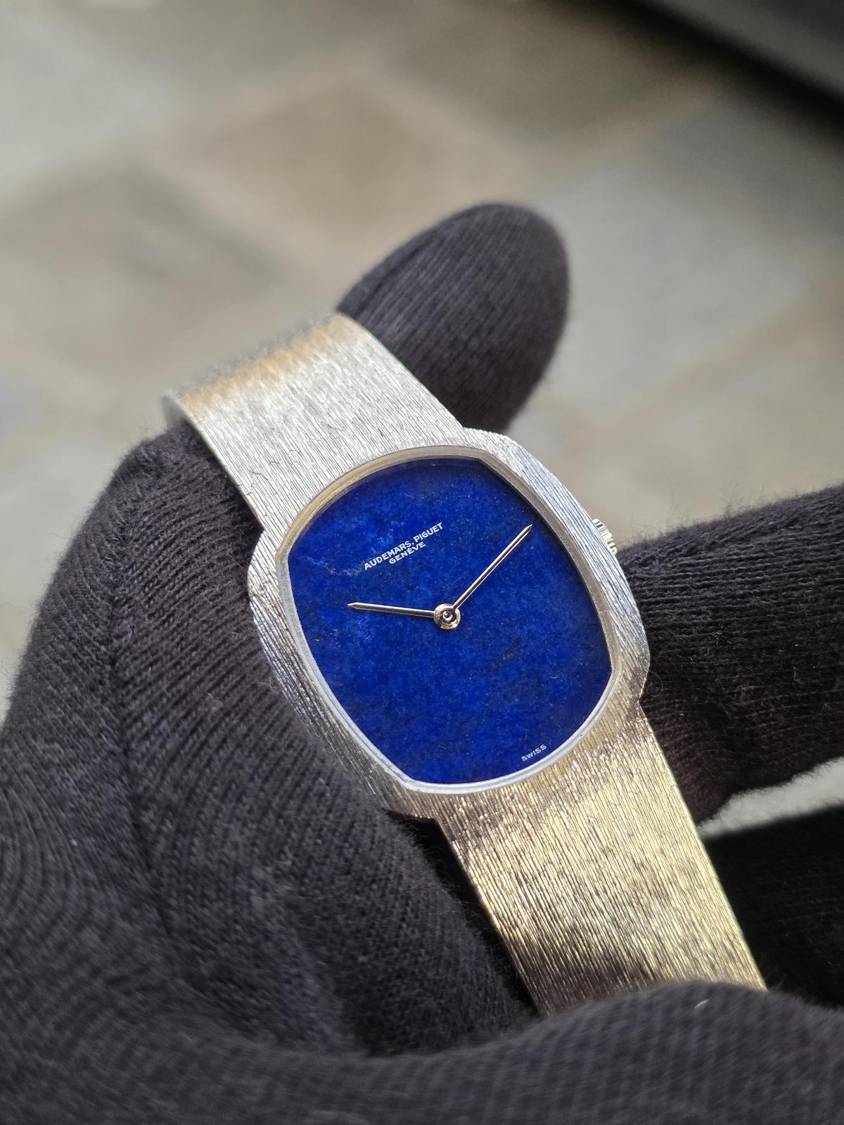 Classic lapis lazuli RARE ! - Complet Or Blanc, cadran lapis lazuli , mouvement mécanique , Superbe montre des années 70' avec bracelet intégré . Avec Service AP 2022.